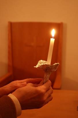 燭火礼拝の最後には、おひとりおひとりにキャンドルの炎が手渡されます。