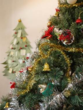 また、玄関から入ってすぐのところには、大きなクリスマスツリーが飾られました。